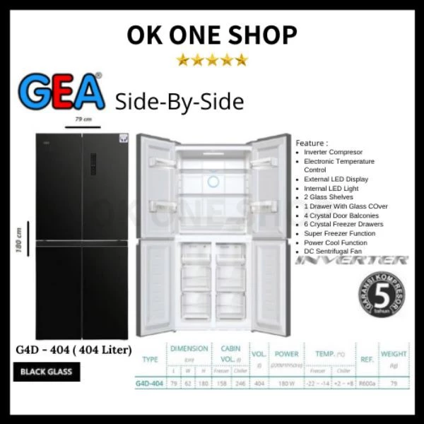 Jadilah yang pertama memberikan ulasan “KULKAS 4 PINTU GEA G4D 404 LEMARI ES GEA G4D-404 4 PINTU BLACK GLASS”