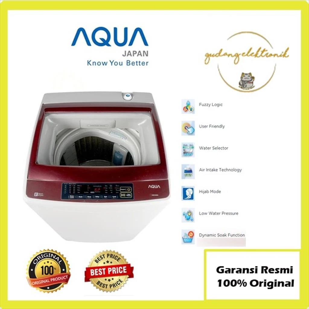 Spesifikasi: AQUA AQW-78DD WASH 380 W SPIN 165 W CAPACITY 7 KG DIMENSION WXDXH 760 X 445 X 898 mm Fitur Fuzzy Logic Menyesuaikan jumlah air & waktu pencucian terhadap berat pakaian User Friendly Dioperasikan hanya dalam satu sentuhan Water Selector Fungsi untuk memilih masuknya aliran air ke tabung spin atau tabung wash Air Intake Technology Mempercepat proses pengeringan dengan menarik udara dari luar Hijab Mode Pencucian khusus hijab & pakaian berbahan lembut yang dilakukan dengan lembut & menyeluruh Low Water Pressure Dapat beroperasi pada tekanan air yang rendah. Dynamic Soak Function Fitur merendam pakaian. Batik Care Pencucian khusus untuk batik dengan pencucian lembut dan menyeluruh