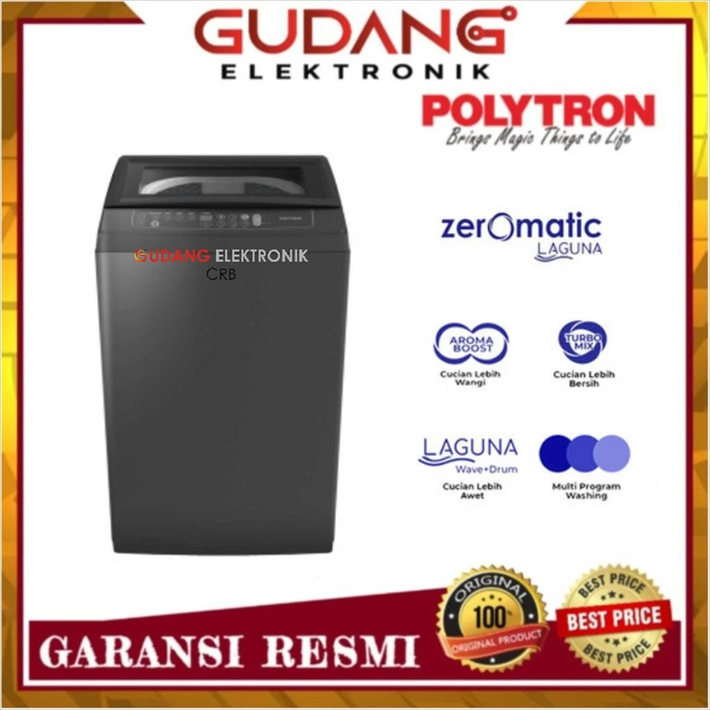 Kini Hadir, Mesin cuci automatic Zeromatic Laguna dari Polytron yang dapat menjawab kebutuhan anda. Mesin cuci ini, sangat cocok digunakan bagi ibu-ibu pintar di indonesia karena, mesin cuci ini dapat menjawab berbagai kebutuhan mencuci ibu di indonesia. dengan fitur unggulan Laguna Wave dan Laguna Drum, ibu-ibu dapat dengan mudah merendam pakaian serta tidak perlu lagi mengucek baju karena mesin cuci ini sudah di design sedemikian rupa untuk menghasilkan efek seperti mengucek baju. mesin cuci automatic ini juga sudah dilengkapi dengan fitur turbo mix sehingga detergent bubuk, maupun cair tidak meninggalkan residu menghasilkan cucian yang jauh lebih bersih. Aroma boost yang dimiliki dari Zeromatic Laguna meningkatkan efektifitas dari pelembut dan pewangi sehingga cucian menjadi lebih lembut dan wangi. mesin cuci ini di lengkapi juga dengan berbagai program mencuci yang dapat disesuaikan dengan kebutuhan bahan anda seperti : Hijab, Normal, Quick, Jeans, Soft, Wash Only, Rinse Only, Spin Only, Wash-Rinse, Rinse-Spin